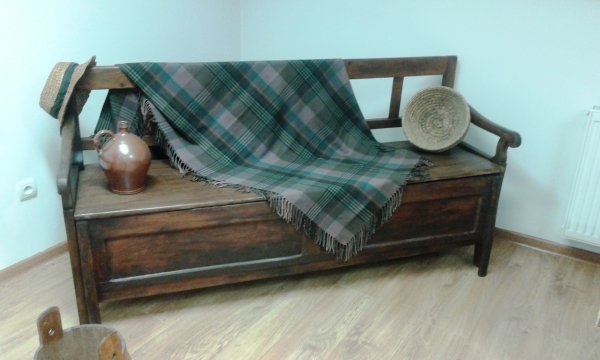 Szlabanek prezentowany w Muzeum Regionalnym w Pilźnie pochodzi z początku minionego stulecia. Front skrzyni zdobiony jest dwoma prostokątnymi, wklęsłymi płycinami. Oparcie z ażurowymi prześwitami, z boku poręcze oparte na zaokrąglonych wspornikach. Dar pana Stanisława Wójcika.